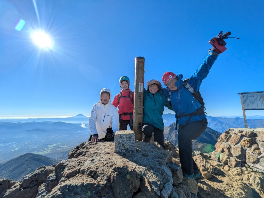 ついに南八ヶ岳の盟主・日本百名山の頂、赤岳に登頂!絶景に囲まれた快晴の山頂で喜びをかみしめます。
