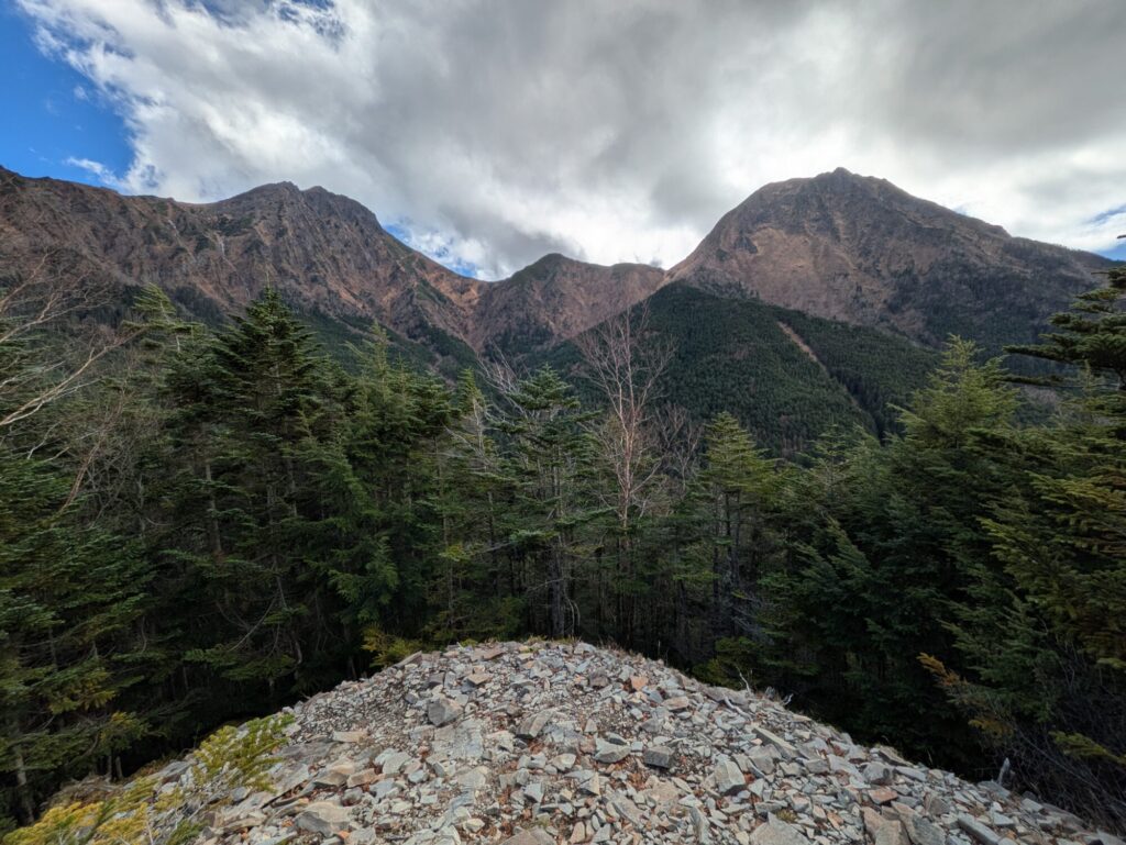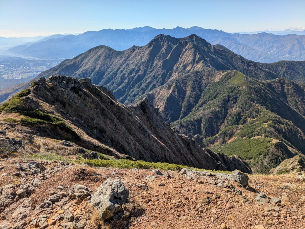 稜線の分岐に到着すると一気に南の展望が開けます。