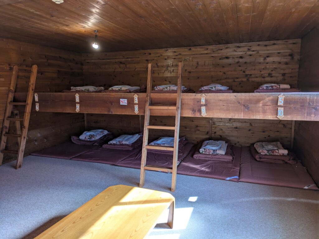 夕食を終えて就寝し夜中に起きると昨日と同じ満点の星空。稜線にかかるようにオリオン座が輝いて、部屋の窓からも星空を眺めながら休むことができて、山小屋の夜を印象深いものにしてくれました。