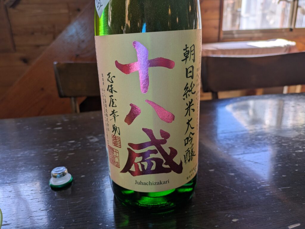 夕食まではたっぷり時間があるので今回ご参加の方がご持参いただいた純米大吟醸で乾杯!重い一升瓶を担いでご参加いただき、誠にありがとうございました!岡山県児島からはるばる八ヶ岳まで運んでいただいた十八盛酒造の銘酒は芳醇な味わいがありながら後味がすっきりとしていて、全員いけるクチだったのであっという間に一本空けてしまいましたね。ごちそうさまでした。