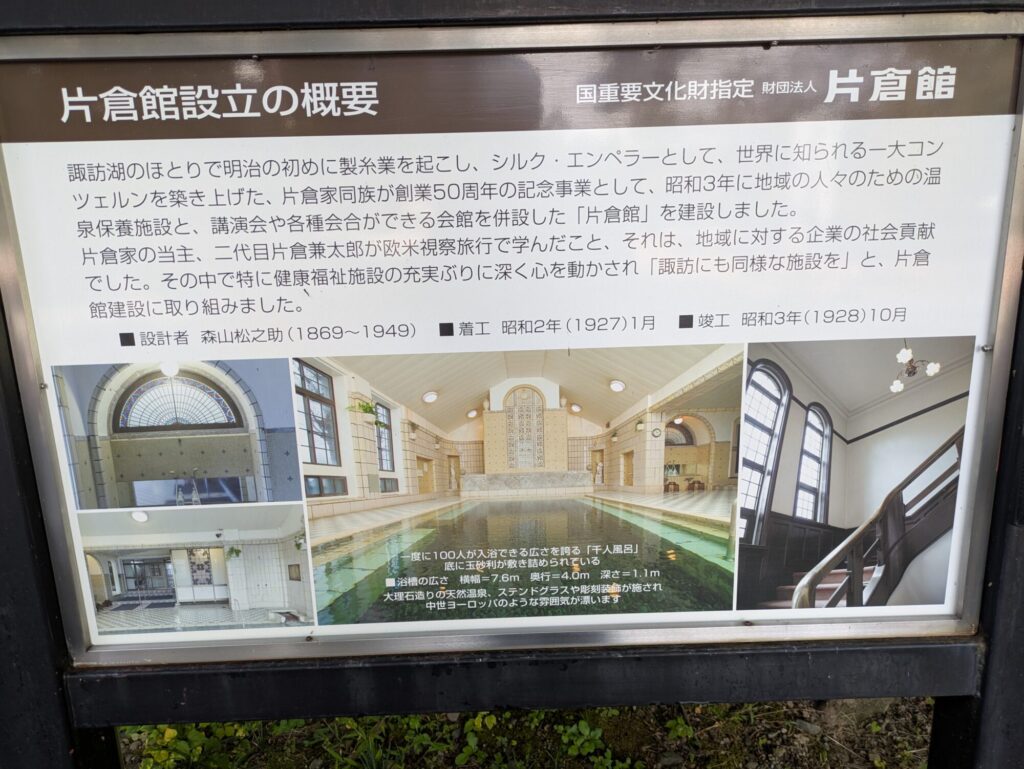 そして諏訪湖の湖岸に聳える洋館、片倉館へ。こちらは諏訪の財閥・片倉家が築いた洋風の温泉施設です。千人風呂と言われる広大な大浴場は各所に素晴らしい装飾が施され、なかなか味わえない洋風の温泉入浴をした後は、関西への帰路へ。