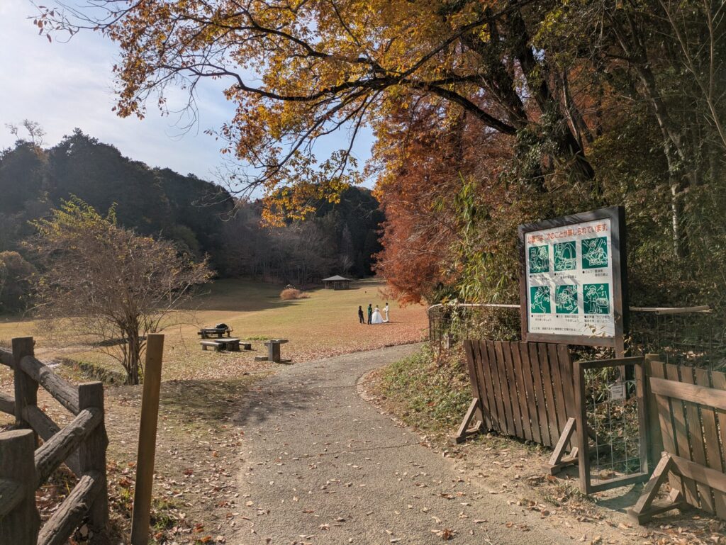 奈良県生駒市と大和郡山市にかけて広がる矢田丘陵は自然が豊かな森林公園となっています。私の家からとても近いのでハイキングで度々訪れているのですが、今日出かけたのは紅葉の終わりにさしかかっているラクウショウを観察するためでした。原付バイクで公園に到着すると平日にもかかわらず、結婚式前撮りの写真を撮っているカップルや愛犬を連れた人たちなど、いいお天気の公園をそれぞれに楽しんでいました。