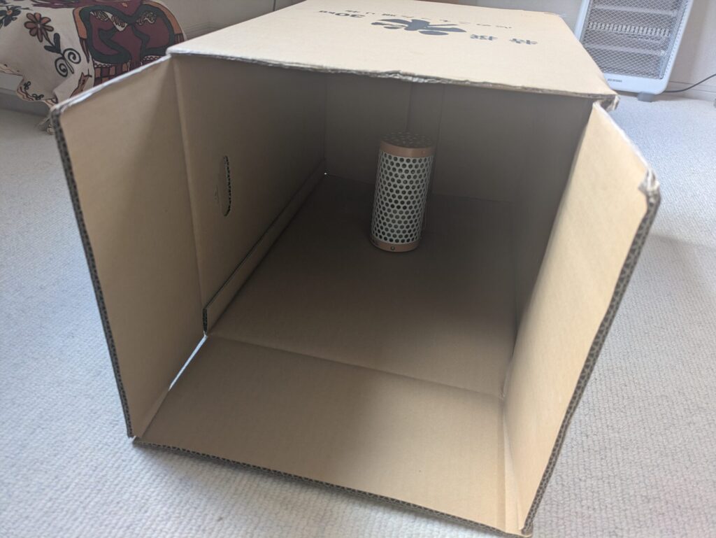 とはいえまだ真冬ですので誕生したひよこを育てる育雛箱を作らなければなりません。テキストなどを見て育雛箱の構造を知り、家にある段ボールでヒナを育てる箱を作成しました。2つの大きな段ボールを連結し、保温用のひよこ電球を組み込み、ひよこ電球が入っているところは寝る場所、上を開けている箱は水やえさを取り、運動する場所に分けて組み立てました。
